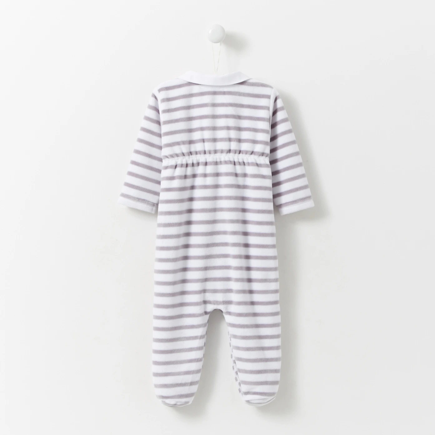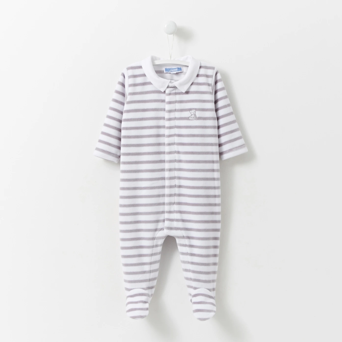 Dors bien rayé en bouclette velours Col en popeline fantaisie. Broderie devant.