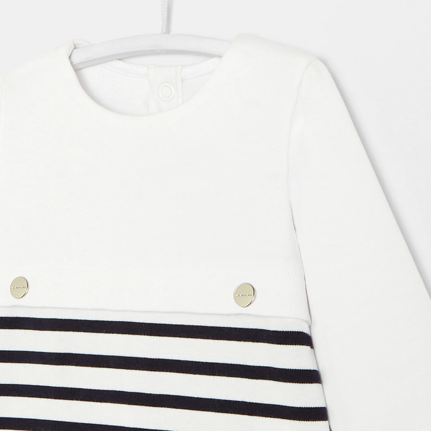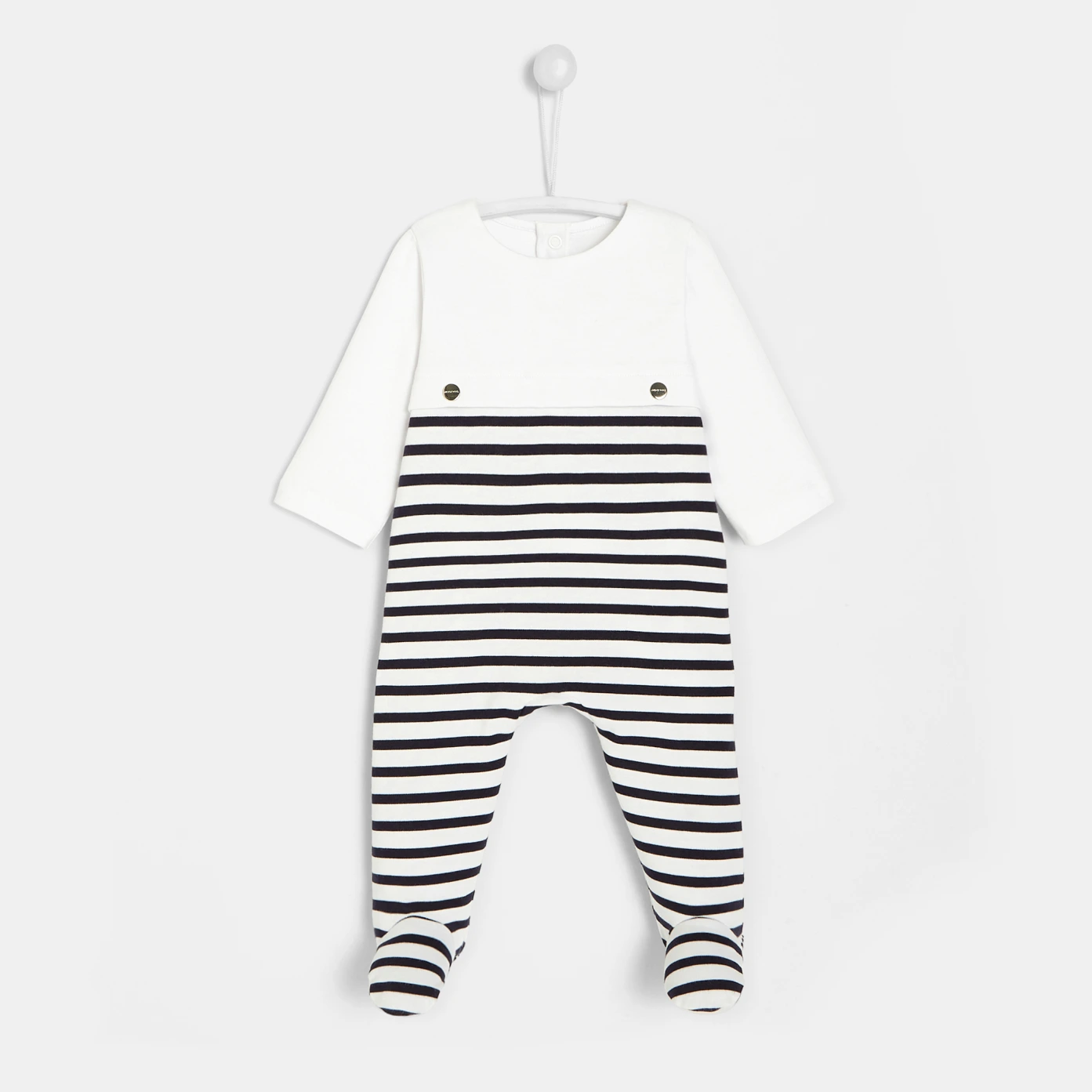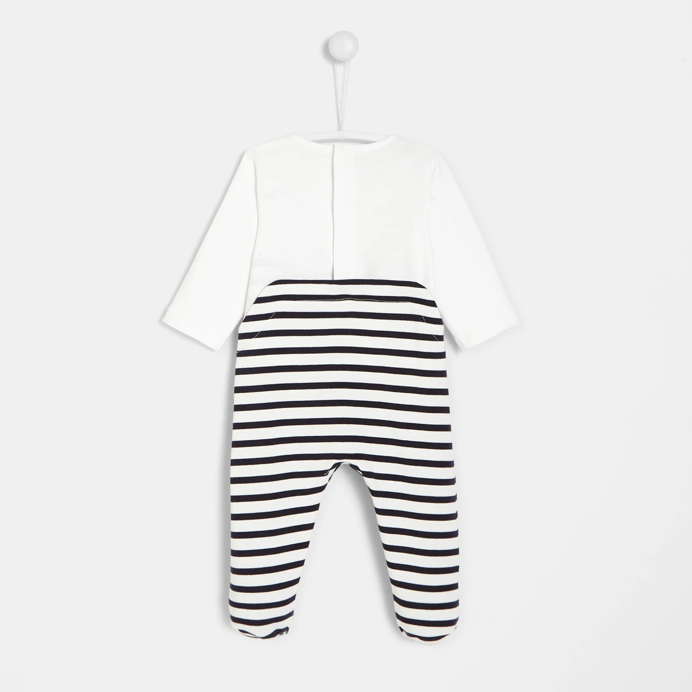 Pyjama en jersey rayé. Boutons-pression métalliques à l'avant. Ouverture au dos par boutons-pression.100% coton organique.
