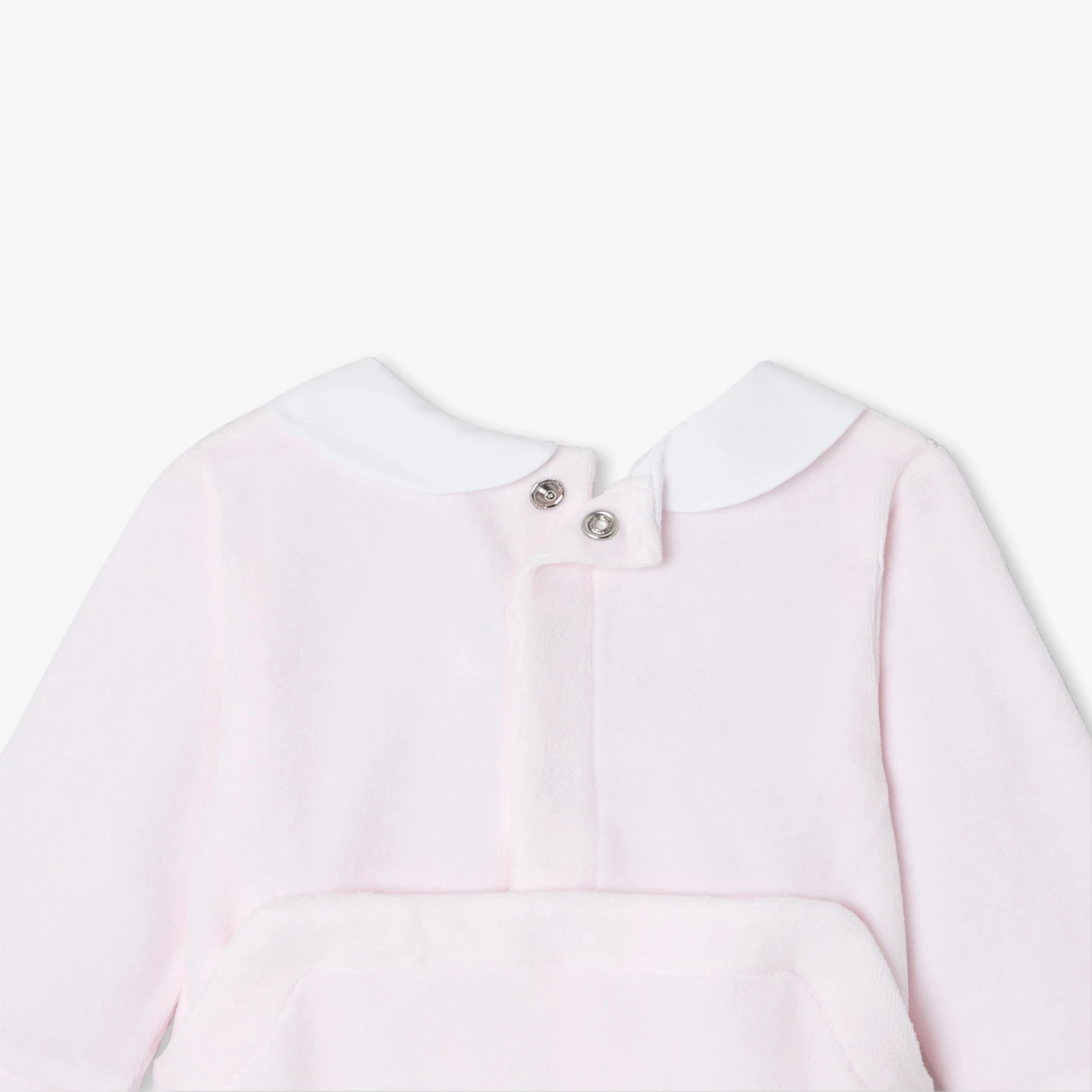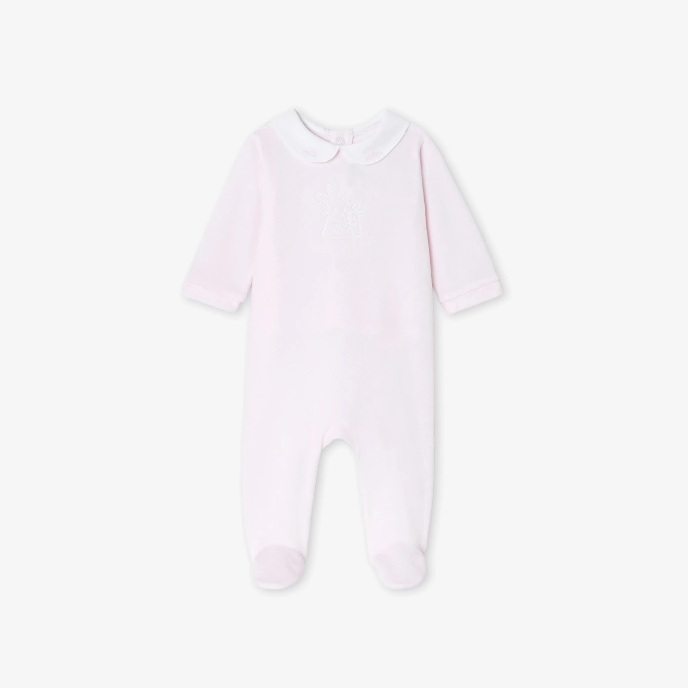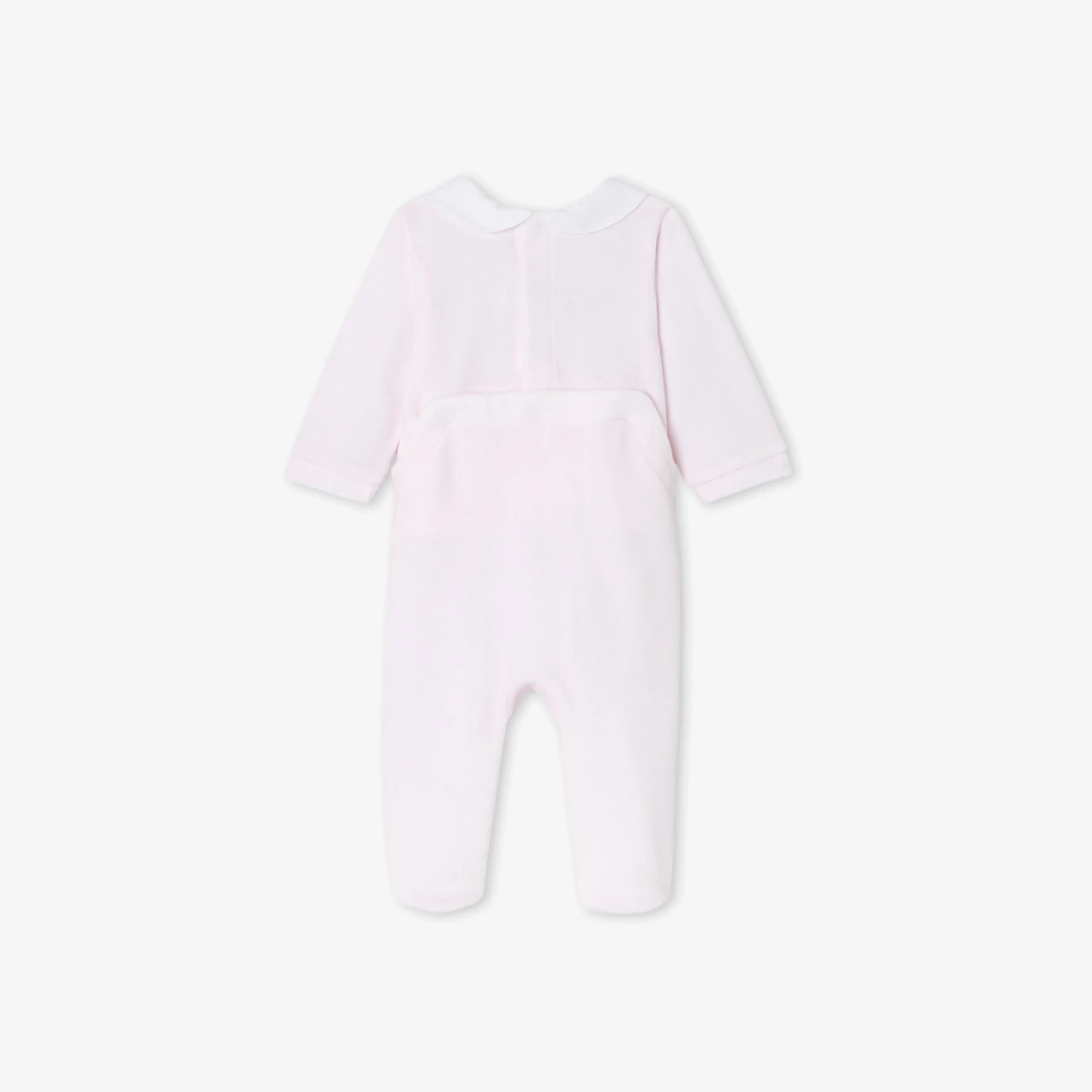 Idéal pour composer le trousseau de naissance, le pyjama bébé fille dévoile tout son chic. En velours bouclette surmonté d'un col Claudine en popeline brodé, cet essentiel du quotidien s'ouvrant au dos par pressions est à coordonner à une gigoteuse Jacadi pour accompagner ses premières nuits.-Pyjama bébé en coton biologique-Col Claudine en popeline brodé-Ouverture pressionnée invisible au dos-Jolie idée de cadeau de naissance à offrir ou à s'offrir