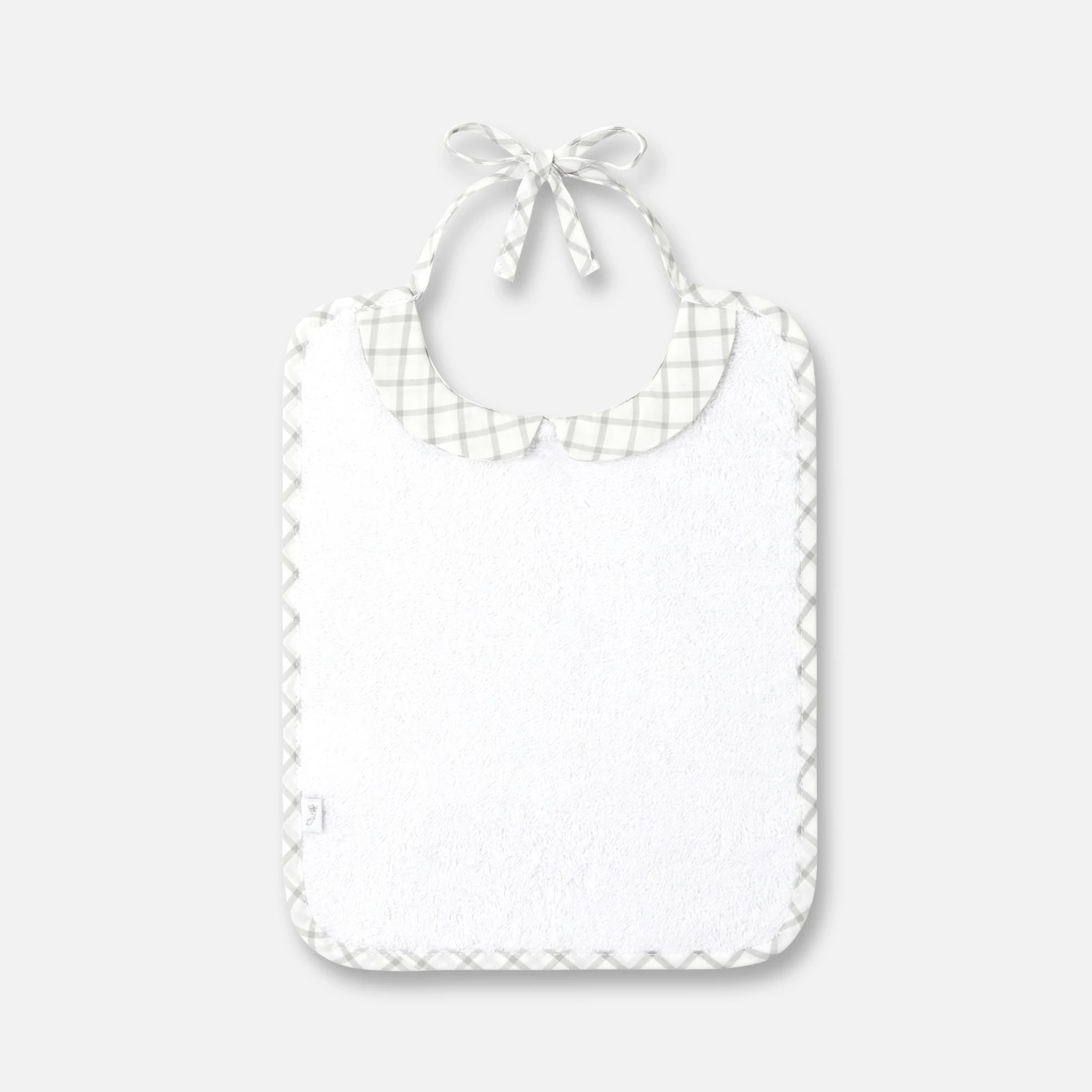En éponge 100% coton et col en popeline à carreaux, cet élégant bavoir aux dimensions 26 x 20 cm sera parfait pour protéger bébé des tâches lors des repas. Produit lavable en machine à 40°.