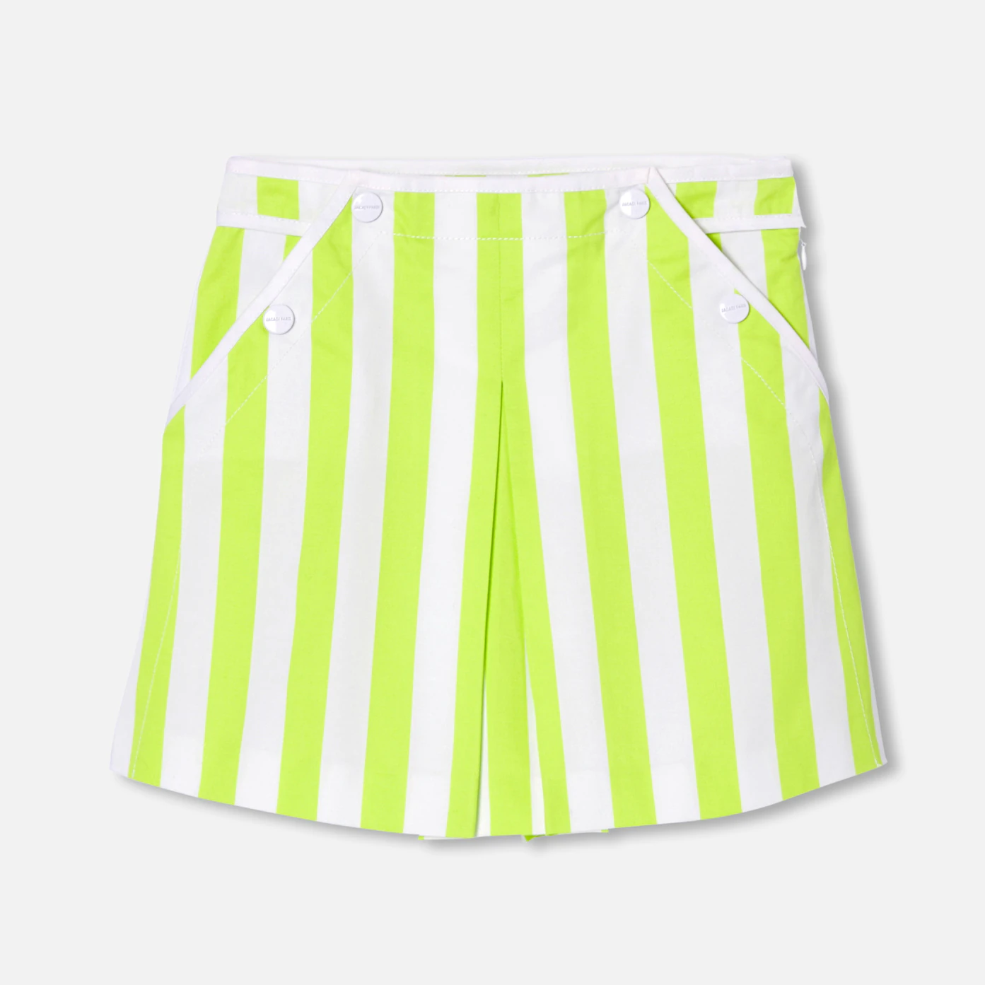 Aussi chic que pratique, la jupe-culotte fille s'inspire du vestiaire 60's pour l'entrée de saison. En gabardine de coton biologique, biais blancs, pressions laquées et coloris pop réveillent ce modèle à accorder à un t-shirt manches courtes et la veste courte assortie pour une silhouette résolument actuelle. - Gabardine de coton biologique- Pressions laquées façon pont- Biais blancs- Ouverture zippée sur le côté- Taille ajustable de l'intérieur par élastique