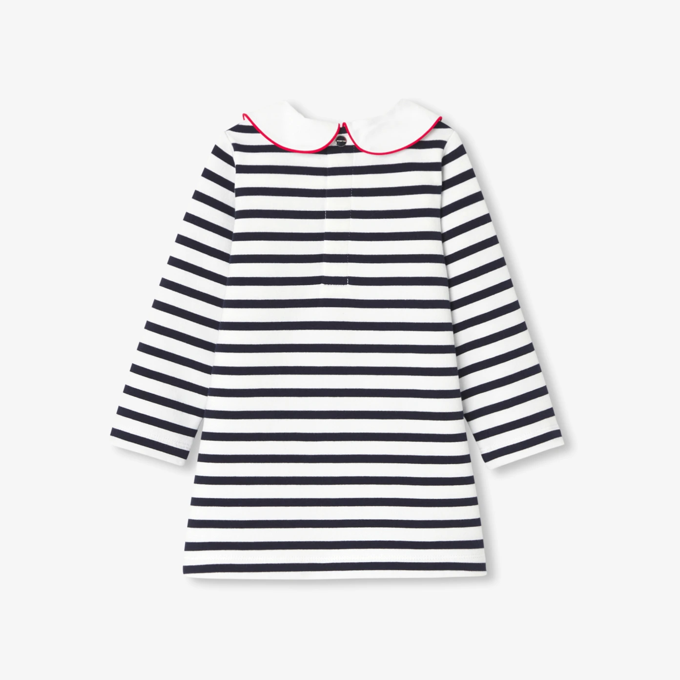 Retrouvez tout l'esprit Jacadi et le chic français à travers cette robe bébé fille. Inspirée de l'iconique marinière, son molleton doux et souple insuffle une modernité décontractée. Sublimée d'un cœur brodé et d'un col Claudine à liseré contrasté, cette pièce aussi charmante qu'intemporelle trouvera très vite sa place dans le vestiaire quotidien.- Robe bébé fille en molleton rayé- Col Claudine à liseré contrasté- Cœur brodé sur poitrine- Ouverture pressionnée au dos-
