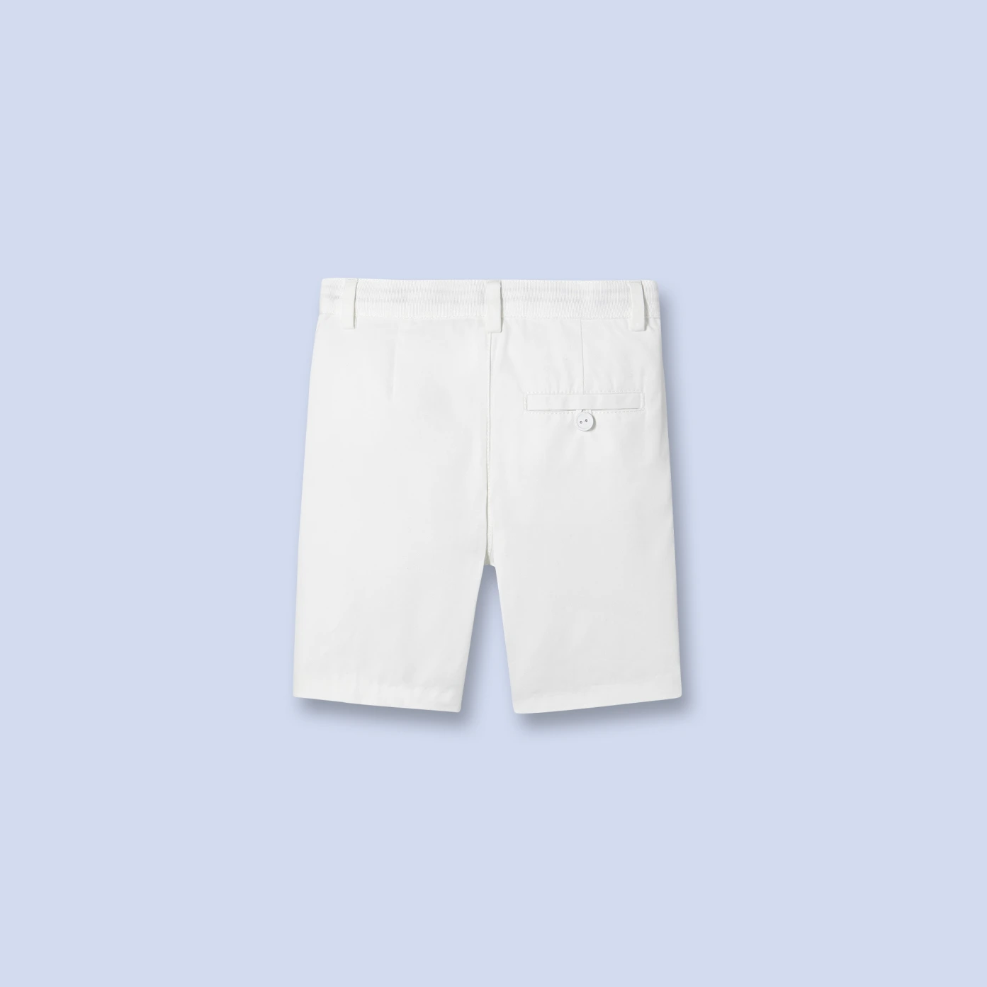 Bermuda en twill de coton léger coloris blanc Ceinture gros grain ton sur ton 2 Poches italiennes devant Et 1 poche passepoilé arrière