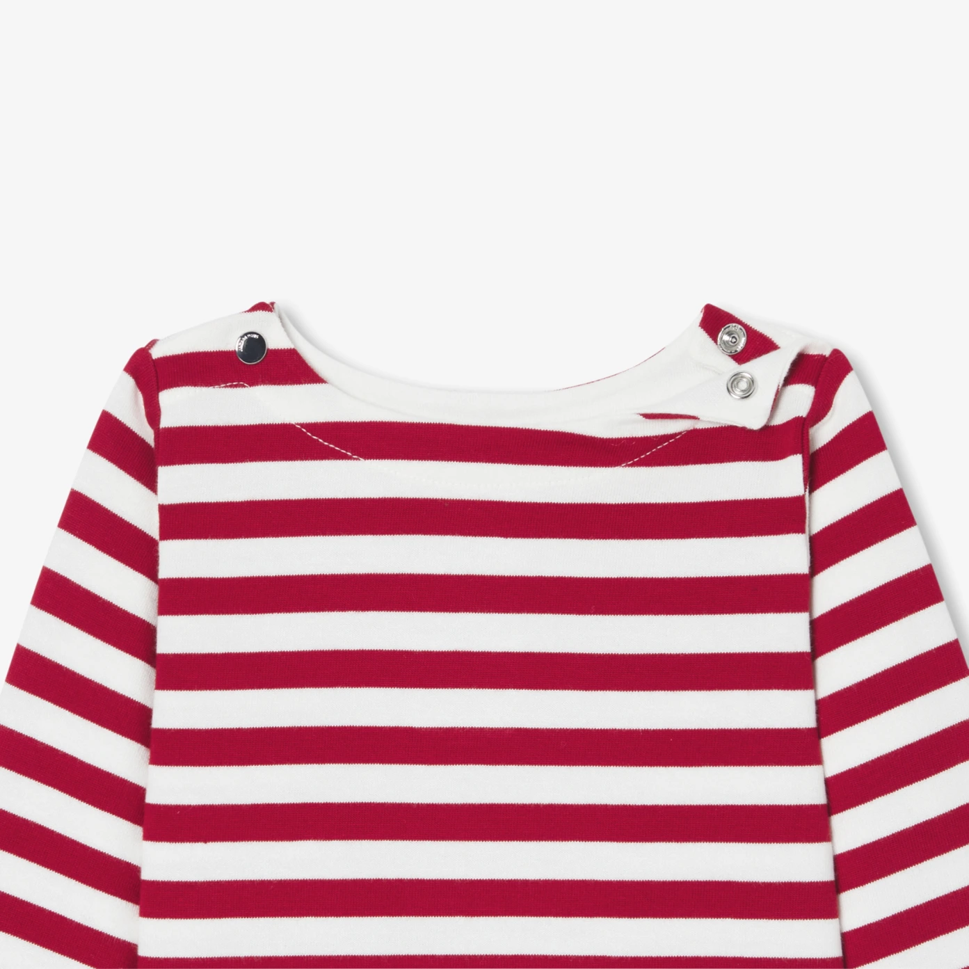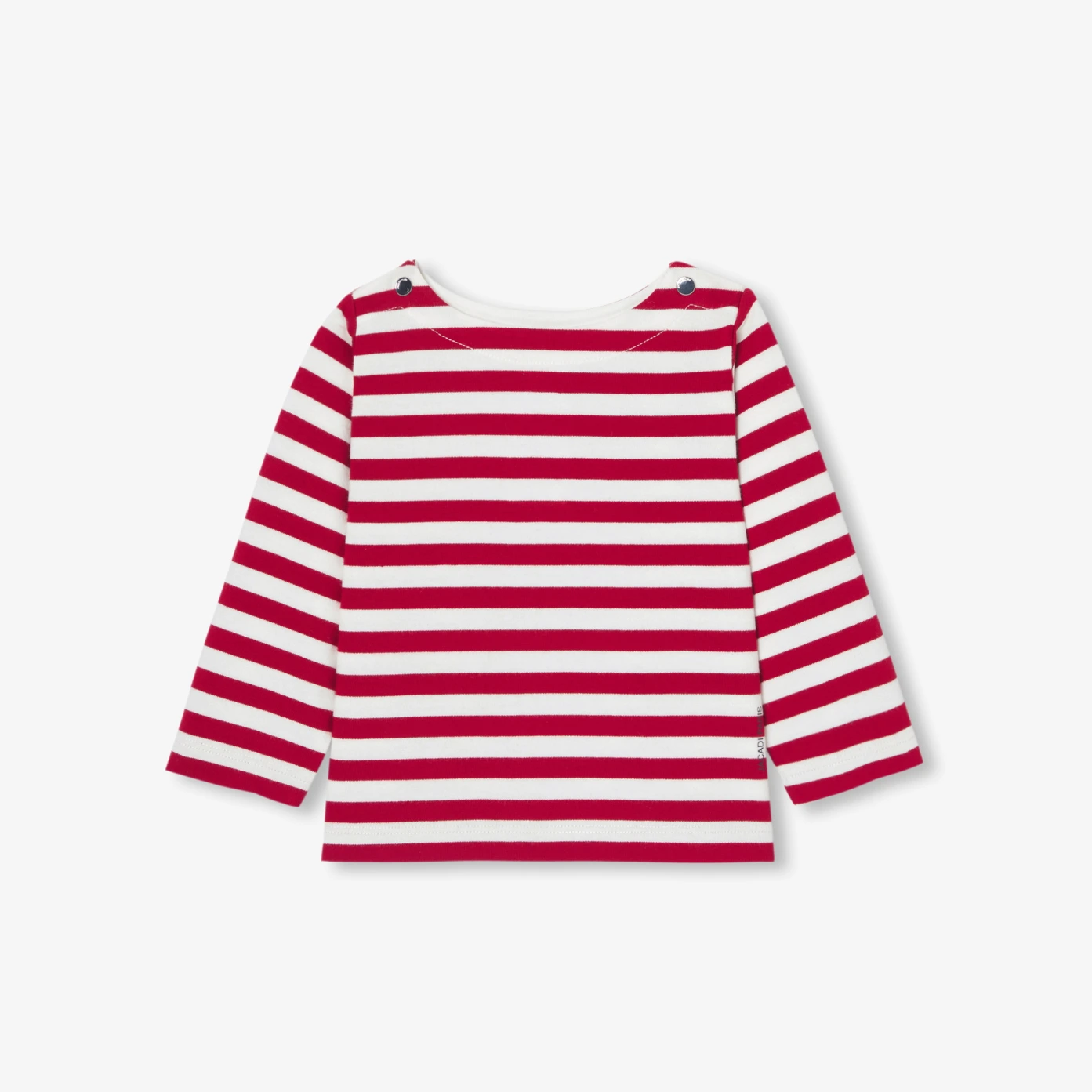 Aussi pratique qu’intemporelle, la marinière conserve son statut d'incontournable de la garde-robe enfantine. Polyvalente et facile à accorder, déclinée dans un coloris rouge ou bleu, jean et salopette seront ses meilleurs alliés pour composer les silhouettes du quotidien.- Marinière bébé garçon en coton biologique- Col marin- Pressions aux épaules