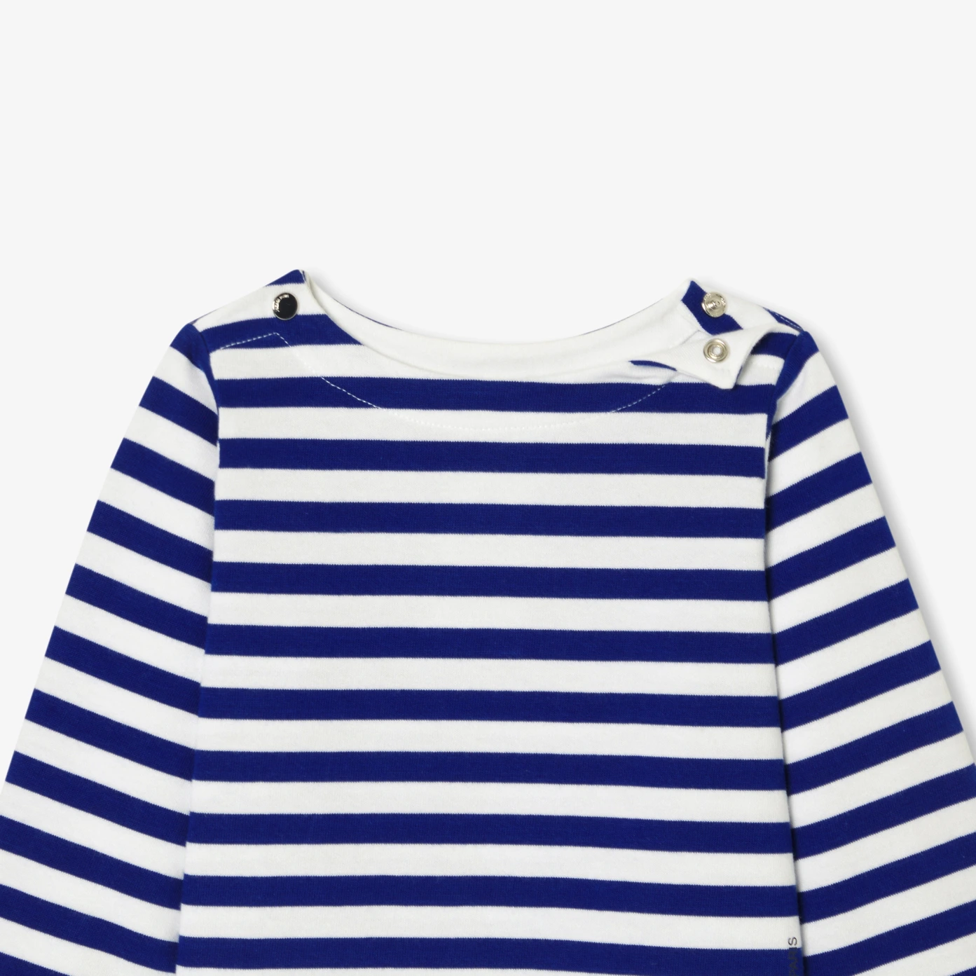 Aussi pratique qu’intemporelle, la marinière conserve son statut d'incontournable de la garde-robe enfantine. Polyvalente et facile à accorder, déclinée dans un coloris rouge ou bleu, jean et salopette seront ses meilleurs alliés pour composer les silhouettes du quotidien.- Marinière bébé garçon en coton biologique- Col marin- Pressions aux épaules