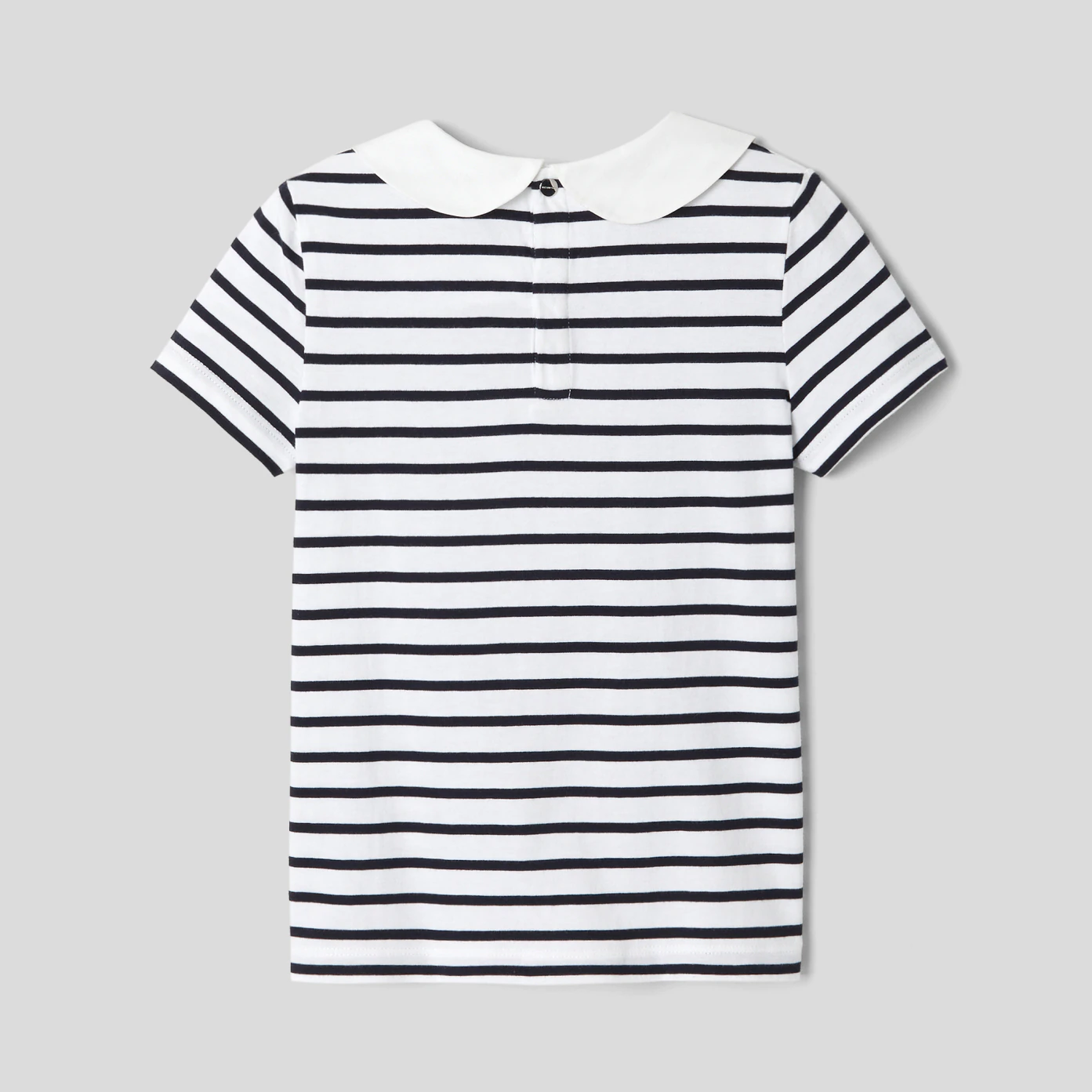 L'incontournable polo enfant fille est orné d'un col Claudine en popeline pour un look chic. En jersey organique souple et confortable, il pourra être porté avec un jean flare ou une jupe plissée au printemps. - Coton organique - Col en popeline - Ouverture pressionnée au dos