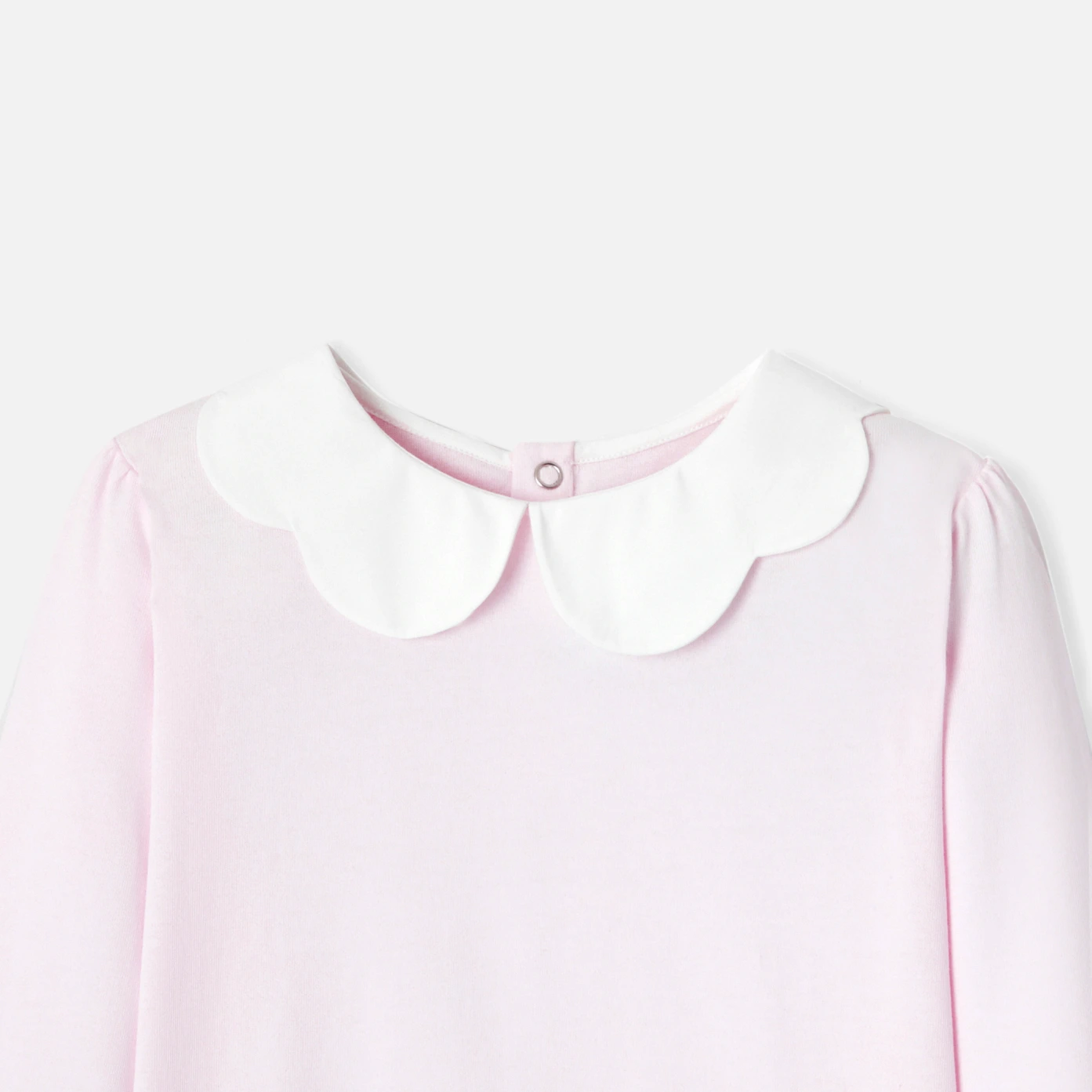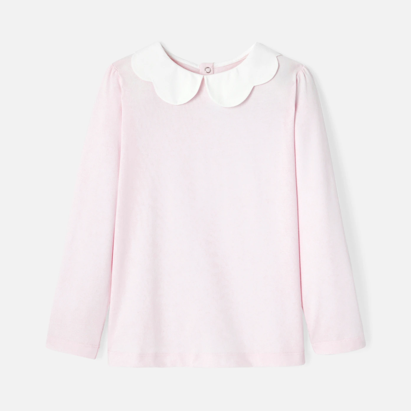 Épure chic et facile à vivre, ce t-shirt enfant fille est sublimé d'un col festonné. En coton biologique, il se ferme par pressions au dos. Idéal pour l'entrée de saison, il s'accordera facilement à une jupe ou un pantalon flare. - T-shirt manches longues fille en coton biologique - Col festonné en popeline - Fronces sur les épaules - Ouverture pressionnée au dos